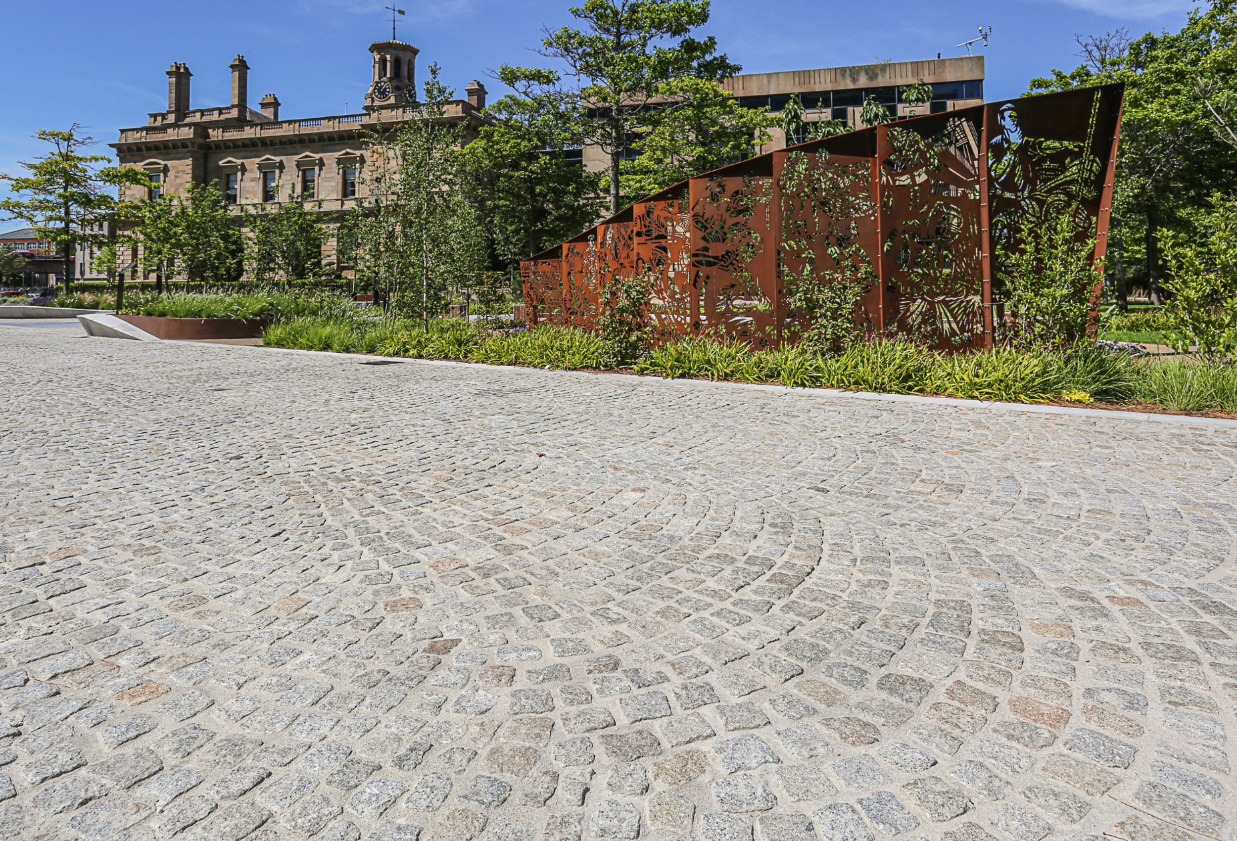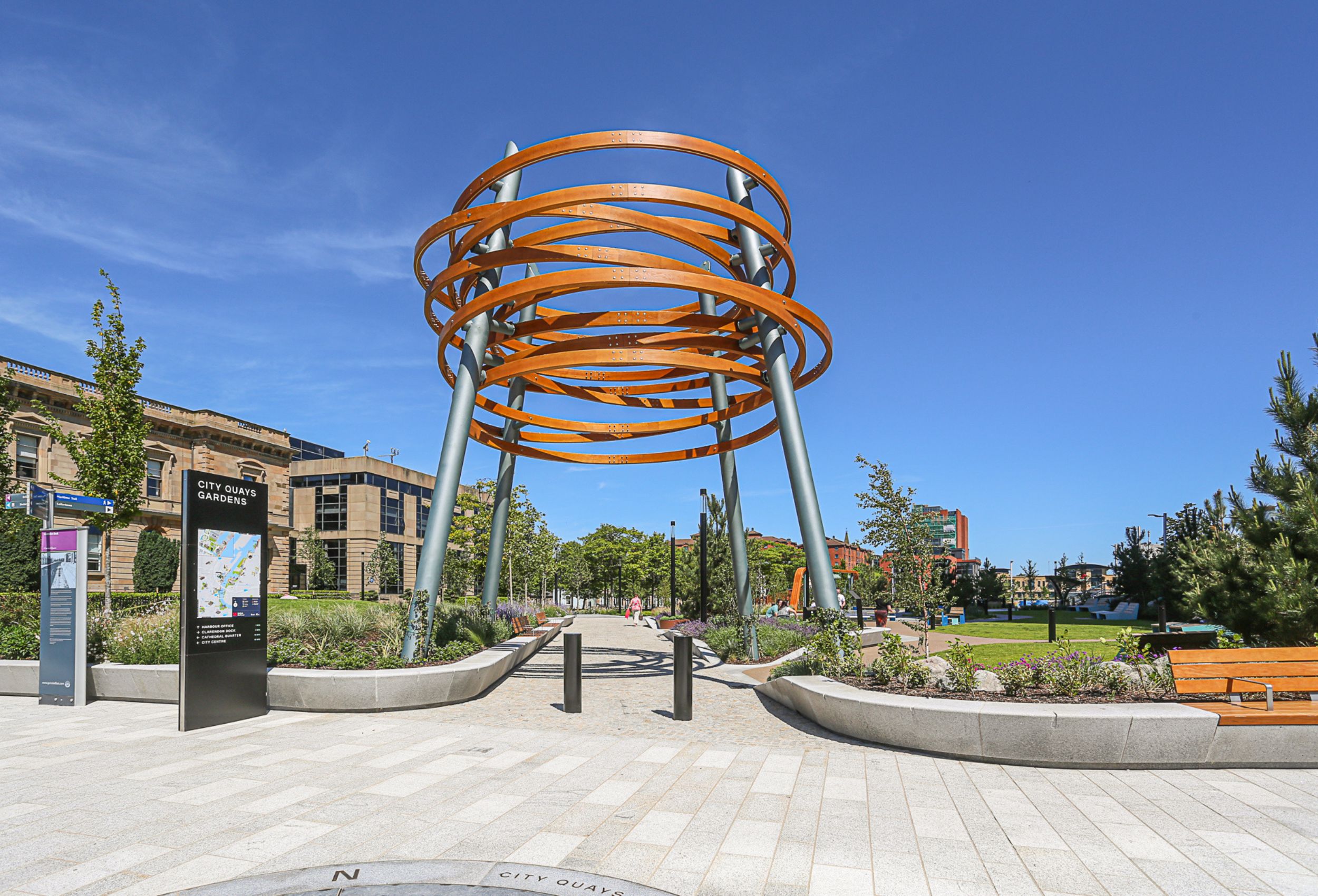 City Quays Gardens, Belfast, is a new public space located adjacent to the City Quays buildings and the historic Belfast Harbour Offices.