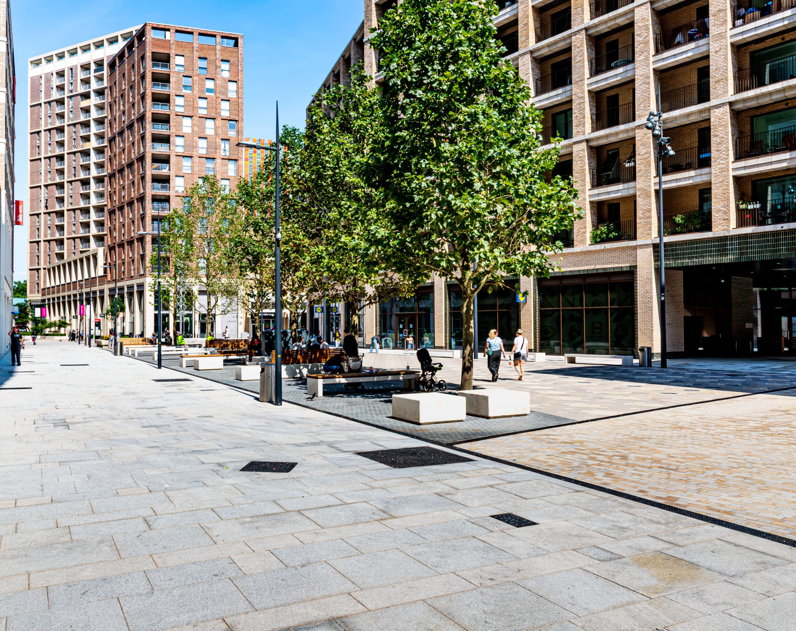 We’re proud to share that Larsen Streetscape Eco BS 7533 products were used to install the paving at the main public pedestrian spaces, square and park at Hallsville Quarter in Canning Town, London.