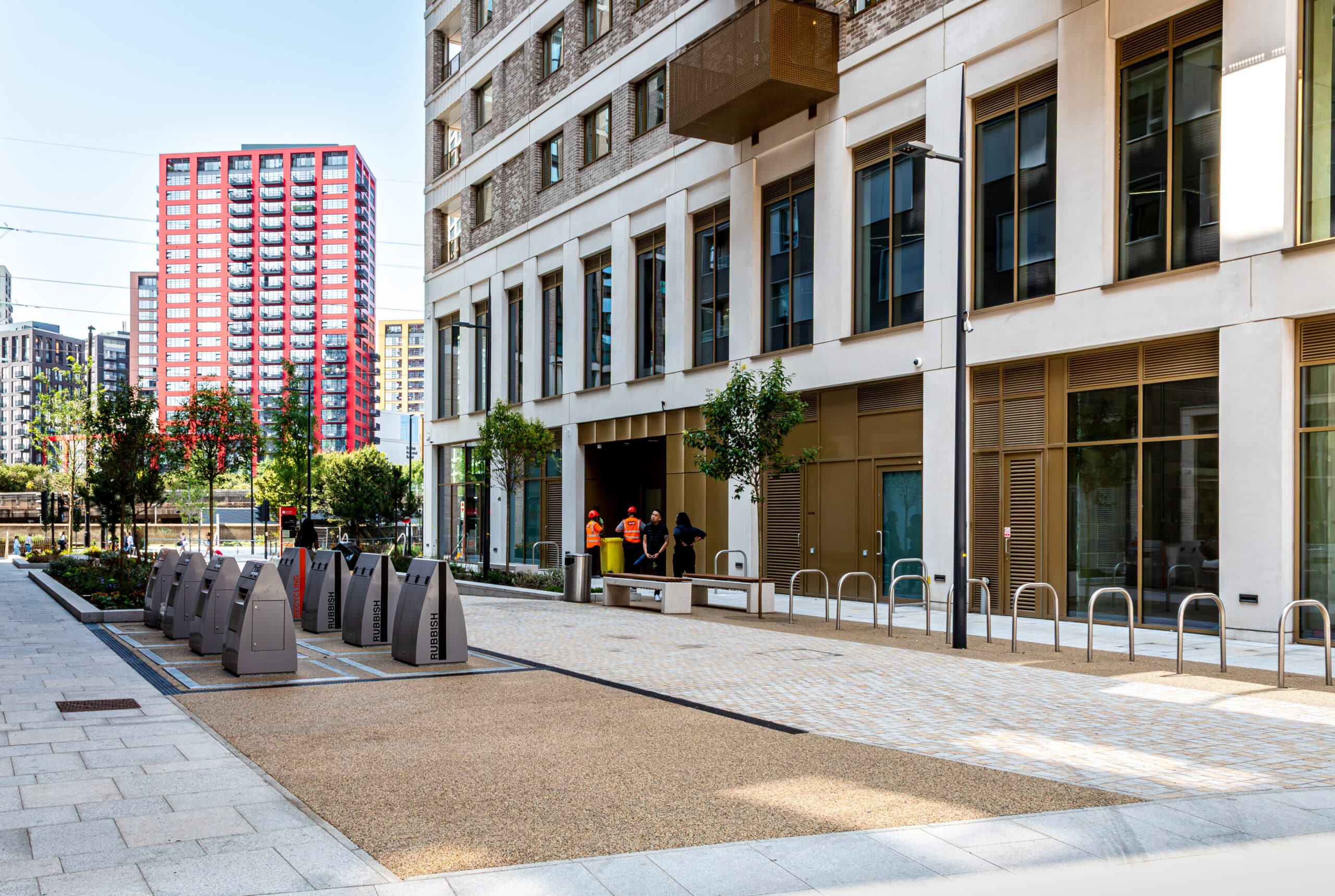 Larsen Streetscape ECO BS7533 FBC Fine Bedding Concrete, FJM Flowable Jointing Mortar (Natural) and PS Priming Slurry were used at the Hallsville Quarter, Canning Town, London. Phase 3 completes the main public pedestrian spaces, with a new civic square, park and new homes for the area.