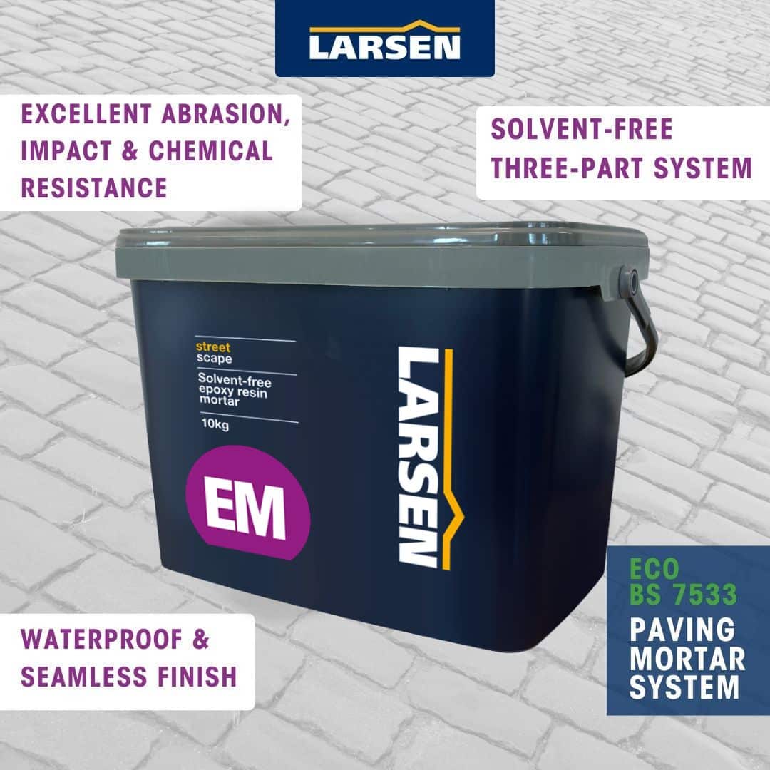 Larsen Streetscape Epoxy Mortar is a three-part pack solvent free epoxy resin mortar perfectly suited for areas where exceptional strength and bond are required.